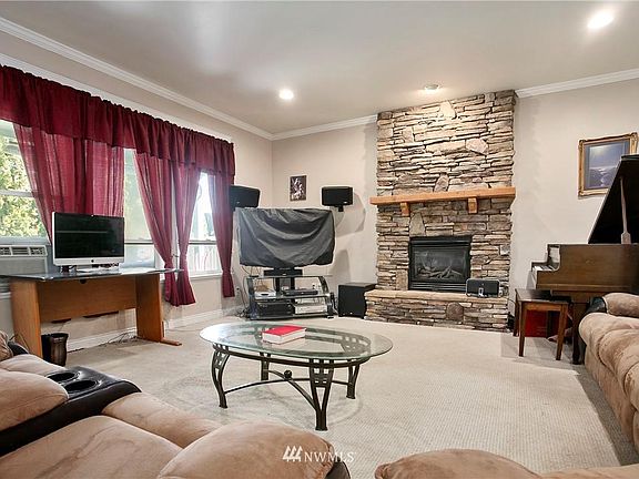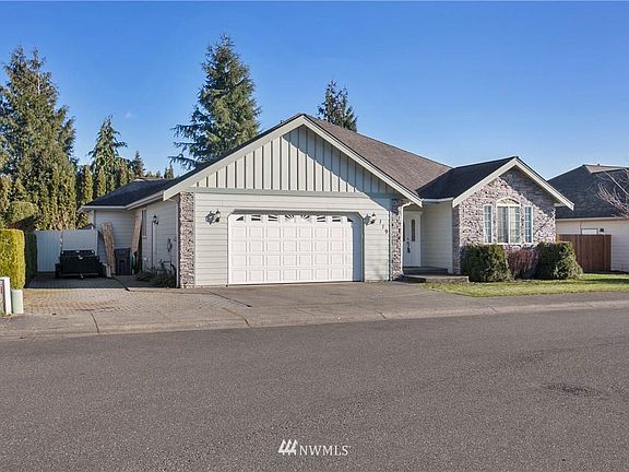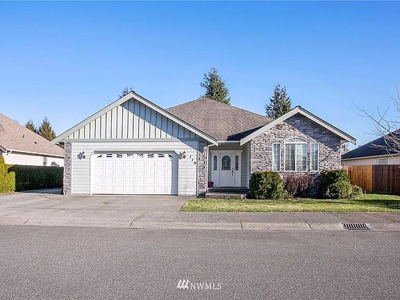Welcome to this single-story home with 3 bedrms & 2 full bathrms, located in the heart of Lynden. This home features 1861 SF with a fully fenced backyard lined by trees for extra privacy & a covered porch; perfect for entertaining! The living room features a gas fireplace which is surrounded by floor to ceiling stone. Spacious kitchen features lots of storage space with a full pantry & large island. The primary bedroom includes a gas fireplace, walk-in closet & en suite bathroom with a soaking jetted tub & dual vanity. Large utility room leads to 2 car garage. Backyard has shed for extra storage & fruit trees! Located in a cul-de-sac, this home includes extra parking on side of home & is close to the trails, parks, restaurants & shopping.