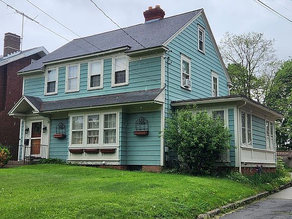 Spacious home, one you're sure not to outgrow, no matter your family size! Lots of windows for natural light on a bright sunny day. Plenty of hardwood floors just waiting to be brought back to life. Lg Living Rm with woodburning stove insert, Roomy Kitchen begging to become the kitchen of your dreams! Great Pantry, Formal Dining Rm, Library/Sunroom with potential of a first floor bdrm. 1/2 bath main floor. LG mudroom for future laundry room main floor. 4 generous upstairs bedrooms, XL owners bedroom. Full bath 2nd floor is ready for you to create it to be everything you ever wanted! Lots of space saving built-ins throughout the house. Huge walk-up floored attic to make a game room, exercise room or man cave, maybe all 3. Full basement, deep fenced lot with lots of flower beds, small koi pond, concrete patio, 2 car garage, shared concrete drive. Boiler furnace 8 yrs old. Roof 12-15 yrs, kitchen appliances & window ac stays, washer & dryer negotiable. Some plaster & gutter repair needed.