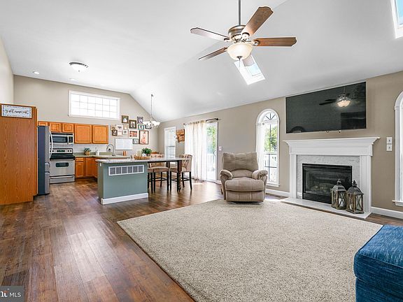 Ranch Home in Dogwood Village. Welcome to this stunning move-in ready ranch home located in the heart of Galena’s desirable Dogwood Village. Offering 2,587± square feet of TOTAL living space, this property combines modern updates with small-town charm. Inside, cathedral ceilings with skylights in both the gathering room and primary bedroom create a bright, open, and airy atmosphere. The open-concept kitchen and living room are connected by a quartz island breakfast bar, designed for both everyday living and entertaining. New waterproof luxury vinyl plank flooring has been installed in the foyer, kitchen, living room, and primary suite. The primary suite also features a spa-inspired bath with a custom ceramic tile shower. A spacious finished basement provides a large family room, a separate office space, and abundant unfinished storage. Additional peace of mind comes with a brand-new HVAC system. The property is situated on .26 acres with public utilities and backs directly to the town park, which offers a walking trail, playground, and pavilion. A stamped concrete patio provides the perfect outdoor setting for dining, movie nights under the stars, or enjoying live music from Galena’s annual Dogwood Festival. The location is ideal, just a short walk to Galena Pizzeria, the library, Cut Loose Salon, Cross Street Market, and more. This home truly has it all—style, space, and a prime location in the heart of Galena.