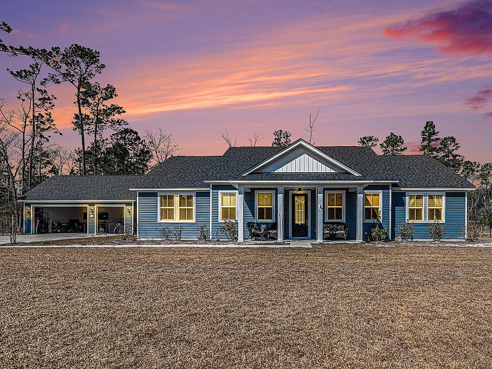 Gorgeous, Ranch style home just under three years young! NO HOA, and 3 car DETACHED GARAGE!! Did you notice that it sits on a full acre of land? As you walk through the front door, you'll notice the open floor plan. Great for entertaining! You'll also notice all of the custom features throughout the home, and garage. The amazing coffee bar is a must see! This home has it all. Location that give you all of the privacy you'll need away from the hustling and bustling city, but close enough to take a leisurely drive to everything that the Charleston area has to offer. Because there is no HOA, YOU get to decide the best use of the property. Plenty of room for your boat, RV, or whatever you have to store. The 3-car garage is amazing! Don't let this one slip away.