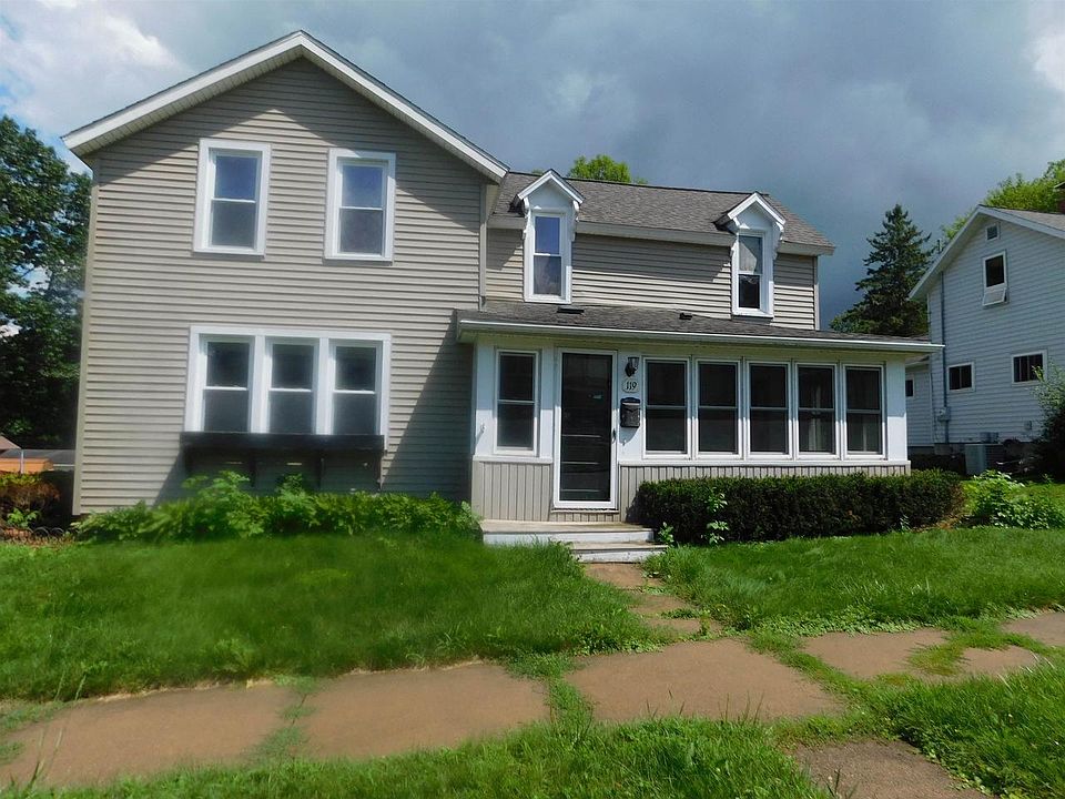 Spacious 3 bedroom home with lots of possibilities. Large detached garage, fenced yard and enclosed front porch. Lot size, age and sq. ft. and room sized estimated.