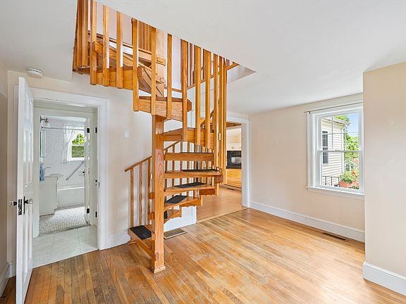 Charming 3 bedroom home with lovely yard in convenient location. Kitchen with beamed ceilings opens up into the spacious combination living room/ dining room area with high ceilings, gas fireplace, ceiling fan and door to large backyard. 2 first floor bedrooms and full bath. 2nd floor has a lovely oversized primary bedroom with full bath and loft area. Great backyard, one car garage, basement for storage. Close to commuter train, commuter boat, restuarants and shopping.