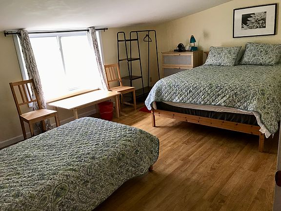 Driveway parking is available. House is fully furnished, with well-equipped kitchen. No smoking or vaping. Owner pays for heat. Utility fee covers electricity and wifi. Owner covers driveway snow removal (3 inches or more).