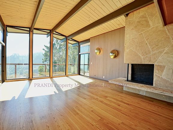 You must see this completely remodeled, luxury rental, a unique offering in the market, where no detail was spared in its tasteful design. Experience unparalleled, panoramic views of the San Francisco skyline, Alcatraz, Angel Island, and the Bay Bridge from nearly every room and from three separate decks. The home is bathed in ample natural light thanks to its south-facing orientation and abundance of oversized windows, highlighting the gorgeous oak hardwood floors and designer light fixtures throughout. The private primary suite is a true retreat, featuring an oversized soaking tub with stunning SF views and a private deck. With a versatile layout, two separate full-size kitchens with all new appliances, and an extremely quiet street location, this home offers flexibility and tranquility. Complete with a 2-car garage and convenient freeway access, there is truly nothing on the rental market quite like this property. A small dog would be considered, upon approval with an increase in the deposit.