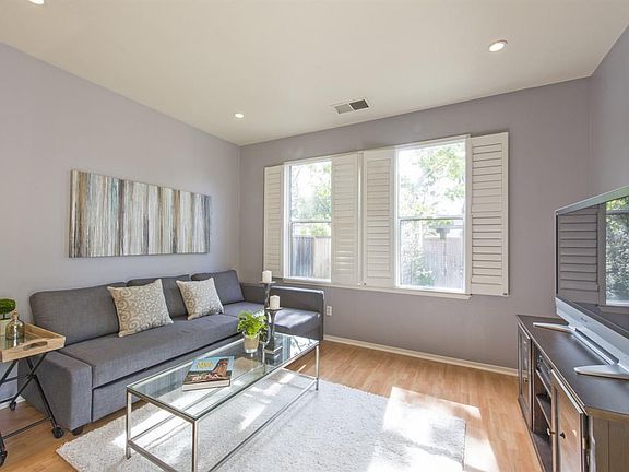 Largest floorplan in the complex on the largest lot!! You will not believe this yard nor space inside this house. Beautifully remodeled single family home (no shared walls) in the sought-after Crossings Community. This property also has a two car detached garage AND an extended driveway. Parking is no longer a problem! Freshly painted with designer colors throughout. New carpeting on stairs and all bedrooms upstairs. Beautiful laminate flooring downstairs. Very spacious master suite with vaulted ceiling looks out over the darling park across the street. Newly remodeled master bathroom with huge glass shower enclosure and custom tile work. Three other spacious, artfully decorated bedrooms with plantation shutters. The home also has air conditioning, gas forced heat and dual paned windows. The rear yard has entertainment space, fresh sod, a fun sand box and plantings aplenty. Must see this yard to believe it! To top it off, the home is served by the top Los Altos school district!
