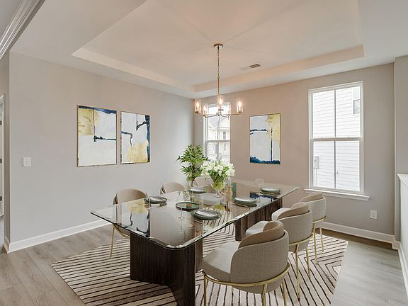 Estimated completion in August. The two-story primary-on-main Peachtree is a four-bedroom, three-and-one-half-bathroom home. As you enter the home, you are greeted by an office and a formal dining room, which leads to the open great room, overlooked by the kitchen and eat-in area. The primary bedroom is downstairs and features a large walk-in closet and an oversized linen closet. In addition to having a boxed ceiling and dual vanity, this home has the largest tiled walk-in shower we have offered to date! Upstairs, all three secondary bedrooms include walk-in closets. Upstairs, you will find two additional bathrooms, three bedrooms, and an oversized bonus room. All this on a private pond homesite.