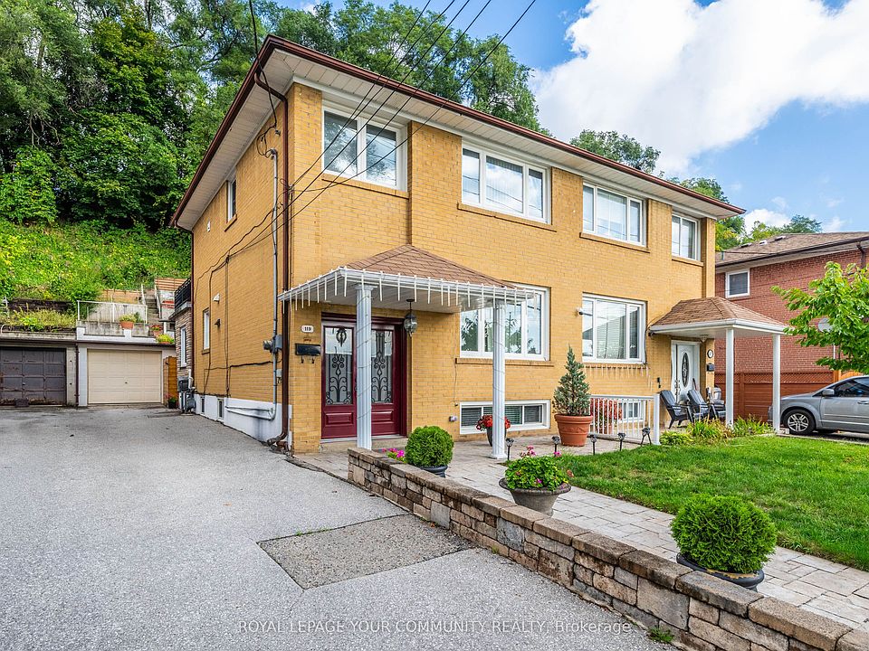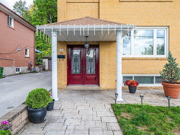 Prime Location on a highly desirable street walking distance to transit, local amenities, parks, schools. Location is A+ This home is loved and well maintained. Immaculately clean, tidy, renovated kitchen with granite countertops, additional room added to the back of the home with a wood fireplace, sliding doors leading to the backyard and is used as the eat in kitchen area. Marble Stairs, French Doors. The backyard is picturesque, reminiscent of a European vibe. 3 spacious bedrooms on the upper level with one bedroom featuring a walkout to an expansive terrace overlooking the gardens. (need size of the terrace). Finished lower level with separate bedroom & full bathroom to accommodate an additional family member. Garage + Long Driveway to accomodate total of 4 vehicles. TTC is Just Around the Corner, School Across the Street, Shopping steps away. Smythe Park is nearby & Dalrymple Park is close by. The neighbourhood is family friendly.