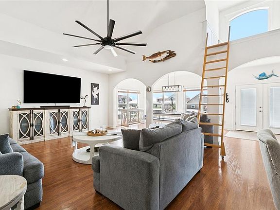 What a beautiful home at Myrtle Grove Marina subdivision. The owner has gone the extra mile on everything and it shows! The home has the open concept plan with the living room, dining area, kitchen and breakfast area in one big open space. This isn't a camp, it's a home! The kitchen has lots of counter space and lots of cabinets, granite counter tops, pantry, pot drawers and more! With a dining area and breakfast area, there is more than enough seating to accomodate your family and friends! The ladder in the picture leads to the loft/with an unbelievable view. Pergo Select Wood Laminate flooring throughout except for the bathrooms which have ceramic tile flooring. The primary bedroom has tray ceilings and the primary bathroom has a separate shower, garden tub with jets and a large walk in closet. Bedrooms 2 and 3 share a jack and jill bathroom. Powder room (1/2 bath) is located in the hallway. Downstairs is amazing. It is so inviting and set up for your enjoyment.....facilities to have a large screen tv....space for relaxing....oversized table... overlooking the double boat slip, dock area, fish cleaning table, etc. Instead of concrete, the owners have installed pavers for the patio area and two driveways/carports.....subsurface drainange...custom landscaping including sprinkler system...downstairs half bath.....additional storage area in the garage.....hurricane shutters for windows and doors.....street side of the home has Bahama shutters.