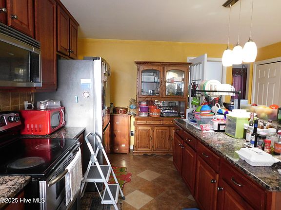 Please excuse the mess, we are moving! Beautiful, well maintained home in Wharf's Landing Subdivision in South Mills. This 4 bedroom 2 bath home , sitting on almost an acre with a formal dining room, living room and a kitchen that offers a large island, closet converted into a coffee bar, breakfast nook with bay window overlooking a fenced in backyard this home is sure to please. The backyard...Your private retreat with a sunroom overlooking the patio, and not 1 but 2 gazebos extending the deck. It's perfect for gatherings or relaxing evenings. Complete with an inground pool, there's plenty of space to relax, entertain, and enjoy life outdoors! Double detached garage has a small workshop area, service door on the back and comes equipped with and a n RV hookup. Attached garage was converted into a playroom and a separate laundry room. Easy commute to VA and Elizabeth City.
