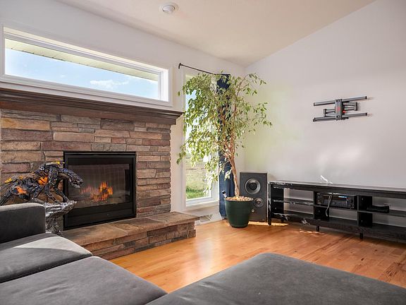 Island seatingGas fireplaceFinished basementCozy rec roomOpen-concept main levelBright stylish kitchenSolid maple hardwood floors