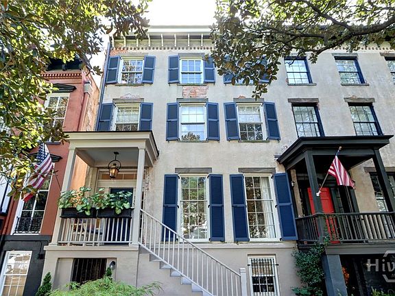 The very definition of Savannah’s Modern Lifestyle! Built c.1853 for Eliza Ann Jewett, Savannah’s premier Real Estate investor of her time, this storied & unique property exudes understated sophistication. Located on arguably the finest block of the Landmark District, the home has been thoughtfully updated & re-imagined over the years. Original detailing throughout - Hardwoods, exposed Rafters & Brickwork, Mantels, etc. Excellent flow and light – Semi-formal Front Parlor, open Concept Kitchen & Dining Area w/ Sunroom & Porch adjacent. Sweeping Master Suite w/ Sitting Area & a 4th floor conversion to a stunning open Loft w/ Sleeping and Lounging Areas (ensuite of course) and private deck. The Garden Lvl Unit is frequently used as Guest Quarters or for Rental Income. An enchanting 2 story Carriage Hse completes the property. Both Grdn Lvl and Carriage Hse have separate exterior property access with Multiple use options. A UNIQUE AND RARE OFFERING FOR TODAY'S LIFESTYLE!
