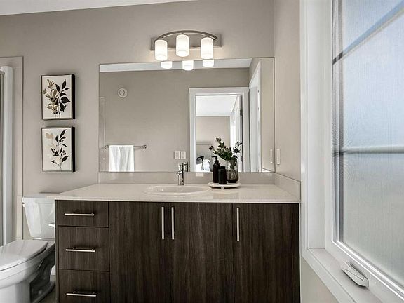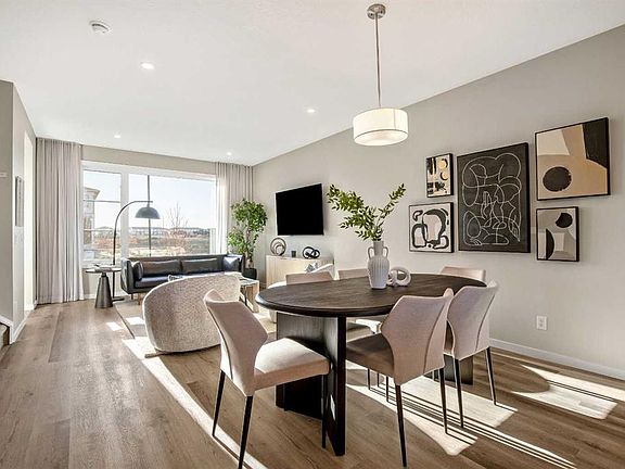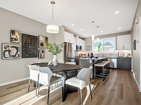 Move into a brand new home by Anthem Properties and enjoy life in the growing community of D’ARCY, Okotoks. This 3-bedroom, 2.5-bath laned home offers 1,440 sq. ft. of living space with 9’ ceilings, luxury vinyl plank flooring, and a bright great room that connects to the dining area and kitchen. The kitchen features quartz countertops, a silgranit sink, stainless steel appliances with gas range, a walk-in pantry, and a flush eating bar. Upstairs includes a spacious primary suite with walk-in closet and ensuite, along with two additional bedrooms, a full bath, and laundry. Built with triple-pane windows, a high-efficiency furnace with HRV, and a 9’ basement foundation with side entry for future suite potential (subject to city approval). D’ARCY offers pathways, parks, and golf right at your doorstep, plus a future town centre and quick access to Calgary. (Exterior render and interior photos are representative)
