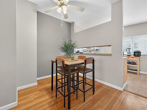 Low maintenance condo living in a fantastic Kirkwood location! All the amazing amenities, restaurants, services, shops and recreation are just steps away and you are across the street from the YMCA and next to Walker Park with a playground and walking paths. This 2 bedroom, 1 bath corner condo offers an open floor plan, 9 foot ceilings, hardwood flooring, white 6 panel doors, ceiling fans, a Living Room, Dining area, ceramic tile floors in the Kitchen and bathroom, raised panel wood cabinets with crown molding, tile backsplash, gas stove, microwave, dishwasher, refrigerator, washer, dryer, closet organizers and more. Both bedrooms have added windows as a result of being an end unit. There is in-unit laundry with a stack washer and dryer. This home includes a storage area, one assigned parking space and plenty of guest parking. This lovely community has a courtyard, gazebo and gardens. There is a secure door to the building and an inside stairway to the upstairs, end unit condo. The door to your condo is inside and weather protected. So much to love!