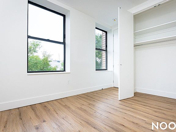 Three bed with windows and closets all over - Access to amazing amenities in 125 Eagle and a beautiful courtyard! Central A/C Exposed Brick High Ceilings Hardwood Floors Video Intercom Natural Light in Living Area Laundry in building Bike storage Gym Game room Lounge Waterfront view from roof Shared workspace Outdoor Space Common courtyard Skyline view Eat In Kitchen Stainless Steel Appliances Dishwasher Stone countertops
