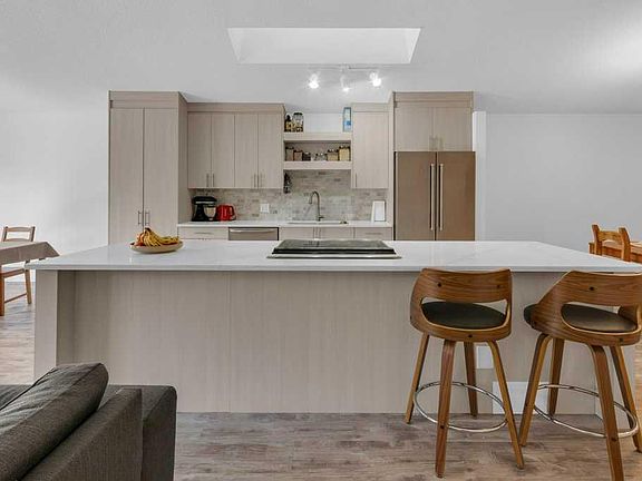 OPEN HOUSE NOV. 2, 1:00-2:30pm. Welcome to this extensively renovated bungalow villa featuring a walkout basement in the sought-after community of Edgemont. The removal of the kitchen dividing wall has opened up the main floor, that now features light colored kitchen cabinets, complimenting the quartz countertops and makes room for the new 10' foot island. Renovations have transformed the main bathroom, ensuite , flex room (bedroom or office) along with the massive primary bedroom that includes a spacious walk-in closet. Other focal points of the main floor are the cathedral ceiling, fireplace, balcony overlooking the courtyard and main floor laundry area that accesses the double garage . Both the main and lower floors have new vinyl flooring. The lower floor has a massive recreation area, where several activities can take place from a media room to room for a pool table or hobbies of interest and has access to a lower patio area. The basement also has a spacious flex room that can be used as a large office or workout area. There is also an addition large bedroom and full bath. Other modernizations of the home include new pex waterlines replacing the poly-b, new hi-efficient furnace and hot-water tank along with new windows and coverings. The balcony and patio overlook the large complex greenspace which features a central gazebo. Edgepark Villas is perfect for a retiring couple, but has no age restrictions. This location offers easy access to get around Calgary and is located close to shopping and transit and has easy access to community green space lined with walking paths. This home won't last long on the market, so book a preview or come to the OPEN HOUSE.