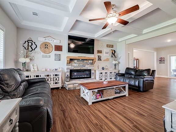 Custom stone fireplaceOversized islandMarble countertopsHuge corner lotLarge bonus roomIncredible storage spaceCoffered ceilings