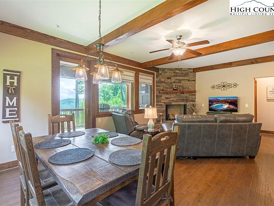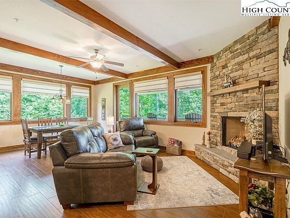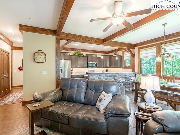 Pristine 2BR|2BA Chalakee condo with outstanding end-building privacy, luxury finishes and a view of Grandfather Mountain! Offered fully furnished, this immaculate mountain escape is ready for you to experience life at Echota. Finishes include hardwood floors throughout the main living areas, stacked stone gas fireplace with remote and custom timberframe accents. The luxury kitchen features custom cabinetry with soft-close drawers, stainless appliances and a convenient breakfast bar with stone front accent. The open living and dining area are surrounded by windows allowing for mountain views and privacy from every angle and you can take in the serenity of the mountains from the spacious covered deck with tile flooring and built-in gas grill with granite surround. The primary suite is tastefully furnished and features two closets and an adjoining primary bath with double vanity, linen closet and large tile shower with glass doors. The comfortable guest bedroom has an adjacent full bathroom with tub/shower combo and plenty of storage. Additional features include 9ft ceilings throughout, custom Hunter Douglas blinds, additional soundproofing and a storage closet at the front entry. Owners have access to the amenity center at The Summit at Echota which includes a spectacular outdoor pool and deck area, fitness facility and skybridge. Enjoy mountain life in this maintenance free community!