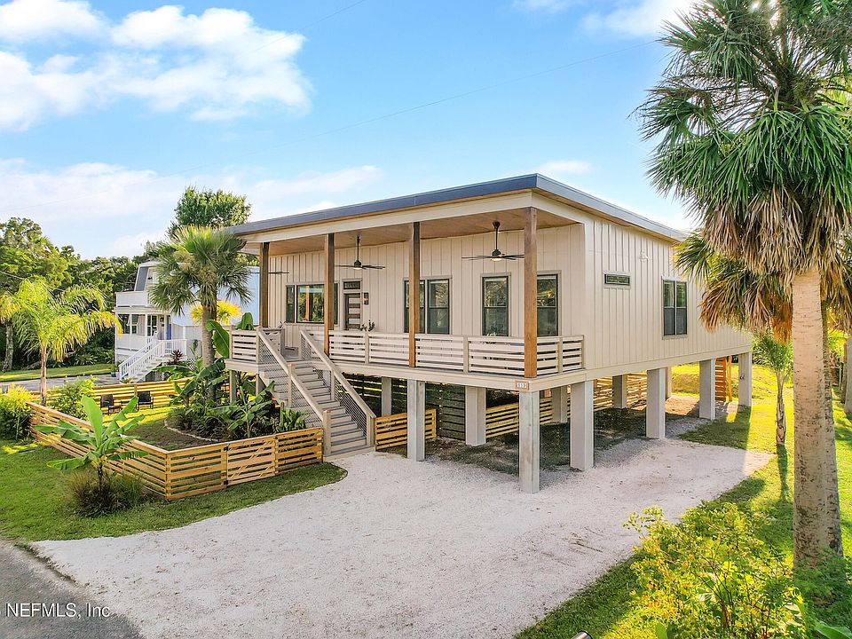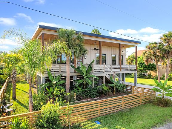 Enjoy the fenced in yard with pesticide-free gardens, including many native and pollinator plants, as well as lush banana trees, palms, and a fruiting lemon tree. You can park your cars or boats under the house, and create the outdoor living space you've dreamed of with this thoughtfully elevated home. Ride your bike to nearby shops and restaurants, or check the surf at Anastasia Park, located 1 mile away. Historic downtown St. Augustine is just 2 miles away. Zoned for and walking distance to RB Hunt Elementary school. Come check out this designer bungalow for yourself!