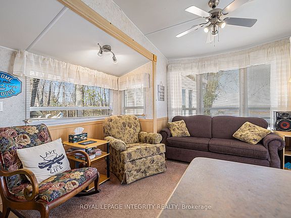 What a spectacular property located in Flintoft Bay on Mississippi Lake. Enjoy the amazing water views while you relax on your deck at the trailer, ro under the covered porch. This 33' trailer offers a generous living room, eat-in kitchen, 4 pc bath and primary bedroom. The trailer has propane heating & hot water and 100 amp service with underground hydro. Adjacent to the trailer is a large insulated bunkie with a heat pump for heating & cooling as well as a small deck. Perfect for guests or extended family. Have fun filled summers on the lake while you enjoy swimming, boating, fishing and family bbq's or watching the little ones run around on your 1.1 acre lot. In addition there is an 8'x8' garden shed on the property. There is also potential to build a permanent home on the lot. Why not make this your dream come true property.