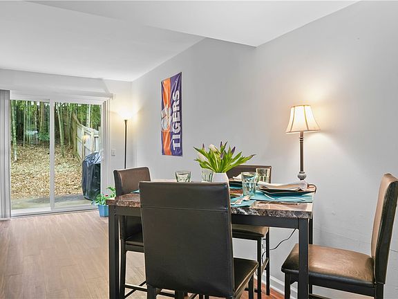 Own your very own Tiger Den! Ready to move in and NO HOA fees! 2 bedrooms, each with it's own bathroom. The main level has a powder room for guests to use in the main hallway next to the laundry area that includes the electric washer and dryer. Living room flows in to the dining area and has large sliding glass door that allows daylight to spill in the room, even on a cloudy day. Large wall areas for TV placement and ease of placing furniture. The new sliding glass door leads to a fenced backyard. The patio is 19x10 concrete pad, perfect for outdoor grilling and patio furniture to entertain outside or just relax in your private space or a place for your pet to play. Kitchen is well appointed with refrigerator, dishwasher, microwave and electric range. The coat closet by kitchen and entry could be used as a pantry if needed but the wood cabinets offer a good amount of storage in the kitchen. There is space for a kitchen table or large island or buffet to be added in the kitchen area. Main level is Laminate wood flooring throughout. Second floor is carpeted and vinyl flooring in the bathrooms. All Windows are updated and have tilt-in ability for ease of cleaning. The location of this unit is terrific. Less than a mile to campus and next door to Orange Theory and Publix, as well as many restaurants and other businesses. There are 9 units in this complex and each has parking for 2 cars in front of each unit. It is a quiet street and cul-de-sac. This townhouse has be used as a long term rental most recently but it would make a wonderful home for a full time resident! It can also be used for AirBnb or VRBO rental as long as it is in compliance with the City of Clemson Rental/Zoning office. The roof is in great shape as is the Trane HVAC unit. Don't miss opportunity in Clemson!