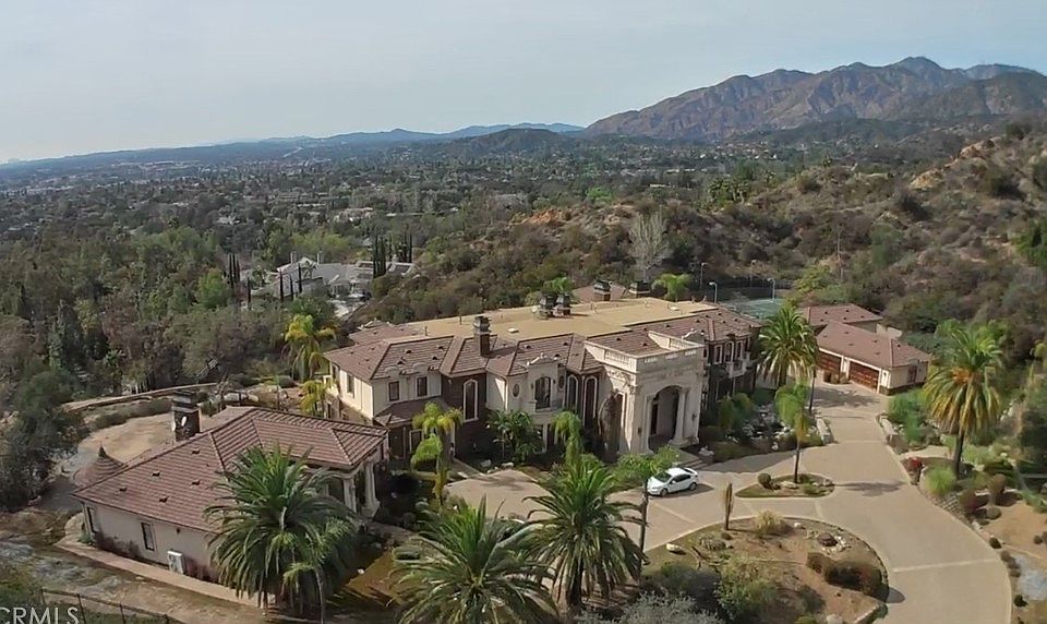 view, view, view. Uninterrupted city lights and majestic mountain views! Experience unparalleled luxury in this custom-build Mediterranean estate, perfectly situated on a 3-acre lot within Bradbury's exclusive 24 hour Guard-gated community. Step inside to a grand foyer featuring dual wrought iron staircases and exquisite marble and wood flooring. The home boasts a grand ballroom with a soaring boxed beam ceiling, multiple wood-burning fireplaces and a dedicated game room. Two gourmet kitchens with a massive island, top-of-the-line appliances, an abundance of custom cabinetry. Retreat to the expansive master suite, a private sanctuary featuring a room and a sunk-in bathtub overlooking the stunning property views The resort-style outdoor oasis is an entertainer's dream, offering a stunning swimming pool with a sunken wet bar, a BBQ Bar, and breathtaking city views. Enjoy active living with a regulation tennis court, or unwind in the sauna and steam room. For guests or extended family, a detached guest house provides privacy with 3 bedrooms and 2.5 bathrooms. Practicality meets luxury with a 4-car oversized garage and an additional 39-foot RV garage. With a total of 10 bedrooms and 15 bathrooms across the estate(including guest house and pool facilities), this property is designed for grand living and ultimate comfort.