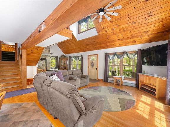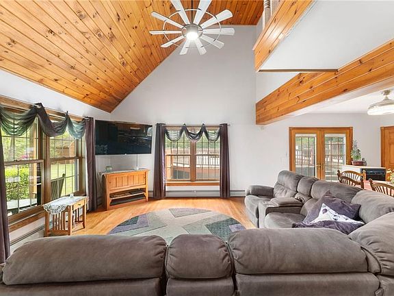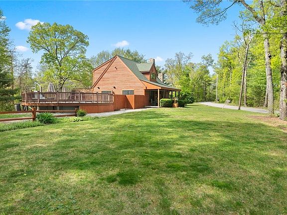 BACK ON MARKET DUE TO BUYER UNABLE TO SECURE FINANCING! A 3 bed, 2 bath Cape, yes, but so much more. Featuring an open updated kitchen, cathedral ceilings, red oak hardwood floors, and a spacious loft for added flexibility. The massive master bedroom could easily be split to accommodate another bedroom. Enjoy two stoves, one pellet and one propane (up and down), a laundry room, and a full in-law suite in the finished basement. Outdoor living shines with a covered porch, hot tub and above-ground pool with a huge surrounding deck. The detached 2-car garage is more like a second home. The upper level has been rough finished including utilities and dormers. It could easily become an ADU with minimal effort. The garage is also surrounded by 12' wide carports for incredible outdoor storage. An additional shed with upper storage adds even more functionality. Not forget to mention the idyllic setting across the street from beautiful Ponaganset Reservoir. A truly beautiful property!