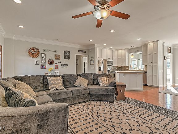 Welcome to this beautifully maintained home in scenic Fall Branch, offering the perfect mix of comfort and functionality. The open-concept layout connects the living room, dining area, and kitchen, ideal for modern living and entertaining. A bright nook provides space for casual dining or reading. The main floor includes three spacious bedrooms, two full baths, an office, and a convenient laundry room. Elegant finishes—crown molding, hardwood, tile, and carpet—add charm throughout. The attached garage offers generous parking and storage, plus a heated utility/storage room for added flexibility. The versatile basement features finished living space with cabinetry, a countertop, full bath, and cozy fireplace, along with an unfinished workshop area and extra drive-under storage. Enjoy stunning views from the large composite deck overlooking the fully fenced yard with multiple seating areas, a well-tended vegetable and herb garden, and additional space to relax. A detached utility building provides even more storage or workspace. Immaculate and move-in ready, this Fall Branch gem invites you to experience peaceful living at its best. Seller Relocating due to work. Pets on property, crated in basement.