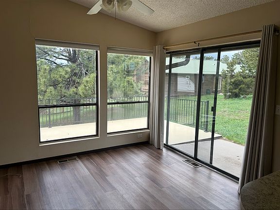 Mountain Triplex-6 miles up cannon to quite serener neighborhood one mountain over from Loveland. 2 houses from plowed and paved road. Walking distance to Pinewood Reservoir. If you get to the lake go back to the first road Greenwood Dr second house on the left. Entryway, driveway, kitchen, fireplace, washer, and dryer in each unit. Cathedral ceiling. All types of wildlife visit the property at 7,000 Ft. elevation. Great mountain water. Must see to appreciate the views everywhere. Rent includes water, sewer and internet. Pets negotiable. Available now Water, sewer l and internet are included. 11-14 Month lease