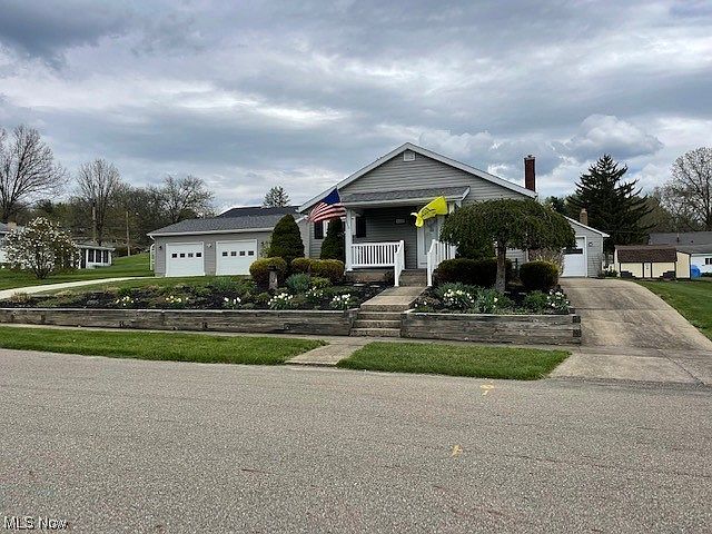 Cozy bungalow with 24x30 detached garage (2019) with concrete parking area. Lower level sportsman's retreat. Lushly landscaped. Built ins. Retaining wall behind garage. Lower level laundry room with laundry sink and wall unit ironing board. Corian countertops with integral sink. Pergola and picnic table with storage building (with electric) 10x14 remain.