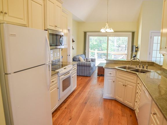 Very sweet home offers three bedrooms, two baths, & attached 2-Car garage. Lovely & private wooded back yard with new black aluminum fence added to back yard recently. Enjoy entertaining off back deck & listen to the sounds of the water feature - bring your Koi! This brick home offers a split floor plan, vaulted great room with gas fire place, hardwood floors, wonderful natural light with the recent trees removed by owner, additional lights added to ceiling fan fixtures, an open DR living off great room with hardwood floors, breakfast nook off kitchen also with hardwood floors and lovely light with glass wall doors, and the sun room is now heated & cooled with a new HVAC unit. Nearly new paint throughout, freshly painted front door & solar light post, and don't forget the butlers pantry which adds additional cabinetry - one could always use more cabinetry! Refrigerator, Dishwasher, Range, Microwave to convey. Join Woodside Plantation Membership for tennis, golf, pool privileges!