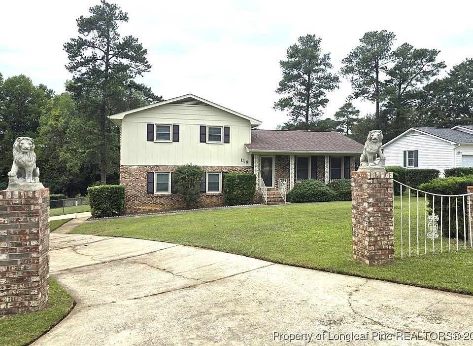 Charming tri-level home with 3 bedrooms, 2 bath. Freshly painted, upgraded ceiling fans in all bedrooms, move-in ready. Located in a quiet well established neighborhood close to Fort Bragg. Spacious den/family room with masonry fireplace. Huge fenced yard with tons of storage and covered back patio to make even rainy days convenient. 1 car garage on the side of the home with driveway, the second garage is on the back of the home and makes it perfect for all those special craft jobs or handyman storages. Close to shopping and schools, I-295 and Fort Bragg.