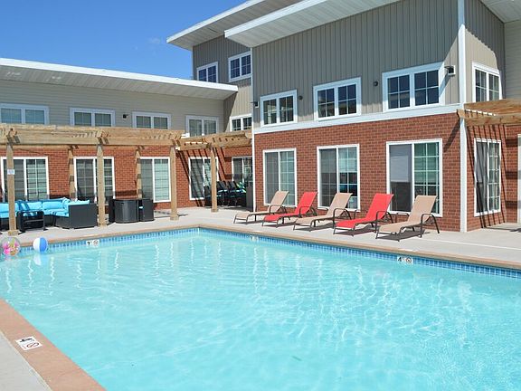 Large Outdoor Heated Pool for the Summer Fun! We have a pet friendly community with a sweet little bark park and state of the art dog wash. Located on the extensive walking paths of the Bismarck Parks and Rec. Our Apartments have single or double stall garages with remote openers, control entry, granite countertops and washers and dryers of your very own. With a dishwasher and island kitchens and extra light it is a chef's dream kitchen.