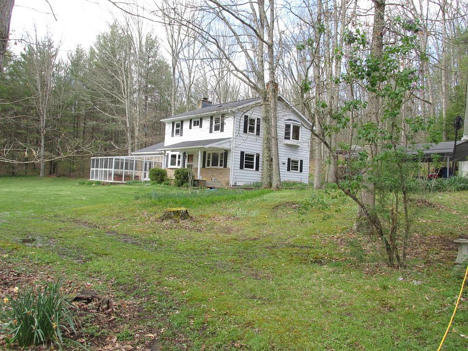 Charming home 2280sqf (4BR, 2.5 BAs)on 50+ acres that offers privacy, seclusion and park like views. This 2 story home offers wood floors throughout most of the home, kitchen with large island, 2 forced air propane furnaces, FR with fireplace/wood stove insert, wood burning stove on main level, and a sunroom (15'x15') with hot tub. Property has a creek and a pond. A 2 car detached garage & worksho
