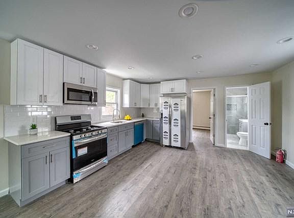 Adorable newly Renovated 4 Bed, 2 Bath, very spacious home on a dead end quiet block in East Orange. This home offers first floor Bedroom, Full bath, EIK,LR, and dining area. Second floor offers 3 great sized bedrooms, brand new beautiful full bathroom and stairs that lead to a huge attic which can be used for recreation, storage for your seasonal decorations or even a work from home office if needed. This home has driveway space enough for 4 cars, a huge 2 car garage and a finished basement. This Casa Bella is a MUST SEE!!