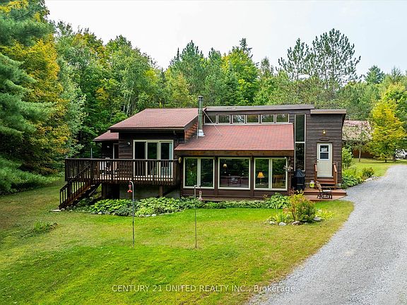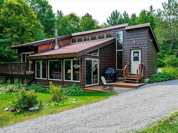 Experience the tranquility of Apsley living with this stunning and meticulously maintained, 3-bedroom chalet-style retreat on 5.34 private acres. Featuring vaulted ceilings, large windows that fill the home with natural light, and a cozy sunken living room, this home blends rustic charm with modern comfort. Stay warm with a wood-burning stove and forced-air propane system. The property offers ample parking and plenty of room to build a garage or shop, along with a new septic bed for worry-free living. Nestled in a forested setting, this home is perfect for outdoor enthusiasts. Apsley is known for its access to lakes, trails, and nature, making it a sought-after location for those who love boating, fishing, and hiking. This rare gem combines chalet-style architecture with the serene beauty of the Kawarthas. Don't miss your chance to own your perfect rural retreat!