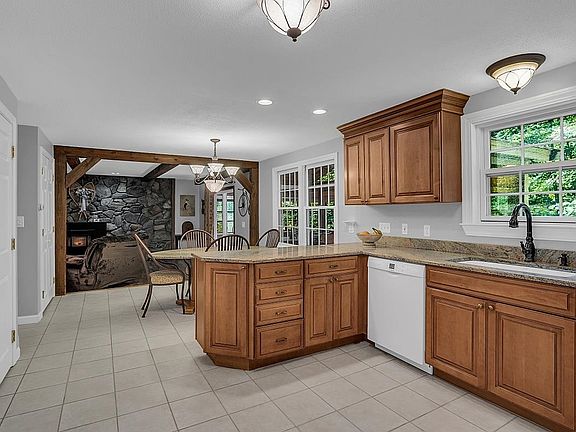 Welcome to your future home, nestled on upper Maple Avenue in the charming town of Atkinson. This beautiful residence has undergone a stunning transformation, transitioning from a Gambrel to an elegant Colonial. The sellers have cherished this home for many years, pouring their care and attention into numerous updates. Now, as they retire, it's your turn to embrace the serenity and history of Atkinson. Step inside, and you'll be greeted by generously proportioned rooms and ample closet space, perfect for comfortable living. A cozy family room, complete with a pellet stove, promises both warmth and savings on heating costs during those frosty winters. Imagine the culinary experiences and memorable gatherings in the open-concept kitchen, seamlessly connected to the dining room by a custom glass pocket door. Hardwood and tile flooring grace the first floor, adding an elegant touch to everyday life. This home functions as a 4-bedroom (note: a 3 bedroom septic) and features a bonus room in the finished, walkout lower level, offering even more versatile living space. Outside, there’s a private, wooded 4.4-acre lot with a sizeable, paved driveway to handle a crowd. This property is truly MOVE-IN CONDITION and ready for a quick closing. Your journey to making this house your home begins here. Don’t wait. Schedule your showing today.