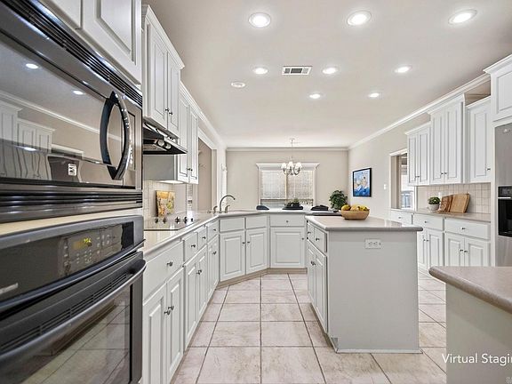 Two-car garageLevel lotAll brick homeEat-in kitchen areaFully fenced backyardBreakfast barWalk-in pantry