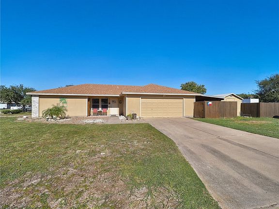 Charming, move in ready, 3-bedroom, 2 bath home on a desirable corner lot! This well maintained property features a BRAND NEW A/C unit inside & out. The primary bedroom boasts double doors and a newly installed walk in shower. The split bedroom design and multiple entry points is an added convenience for guests. Relax and retreat from our South Texas heat under the LARGE covered back patio. The vast storage building could lend itself to many uses; workshop, hobby space, tackle room, or anything you can imagine. The 2-car side entry garage, front parking, and side parking is perfect for all of those weekend gatherings or holiday festivities. Whether you are looking for a coastal retreat or a full time residence this is the best of both worlds. Close to Conn Brown Harbor for access to public boat ramps, fishing, a walking/bicycling trail with one of the best views around. Enjoy the convenience of being centrally located to Ingleside, Rockport, Portland, Port Aransas, Corpus Christi, and all that our beautiful coast has to offer!