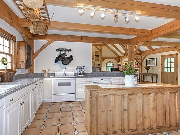 - Kit Dscrp: Pantry, Countertops - Stone/Granite/Solid, Flooring - Stone/Ceramic Tile, Ceiling - Beamed, Country Kitchen, Peninsula