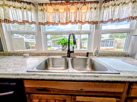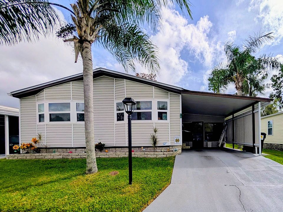 If you're looking for a beautiful and well maintained home in a resort style 55+ community, look no further! This home with it's many upgrades will allow the new owner years of maintenance and worry free living. This charming, partially furnished two-bedroom, two-bath home is located in Highland Village and offers an inviting open floor plan with vaulted ceilings, neutral painted drywall, 2025 installed energy efficient double pane windows and new plywood subfloors with water resistant luxury plank flooring throughout most of the home. Another great feature this home offers is a just installed 2025 new 3.5 ton HVAC system and new duct work with a transferable warranty! The spacious kitchen features beautiful natural hickory wood cabinets, marble-like finished counter tops, all Samsung Stainless Steel appliances, Stainless Steel double sided sink and the convenience of a mobile island. Off the kitchen is the dining room area that seamlessly flows to the spacious living room. The living room features these brand new windows on two sides, allowing natural sunlight to illuminate throughout. The two bedrooms offer spacious closets and the master bedroom offers an ensuite bathroom that features an updated modern lighted vanity and a beautiful glass enclosed shower. The guest bathroom, also with upgrades, offers a tub/shower combo and is conveniently located across from the guest bedroom. Both bathrooms offer beautiful wood grain finished ceramic tile. The home is located on a large lot with a private backyard and also a driveway that could accommodate two compact vehicles or one vehicle and a golf cart. At the beginning of the carport is a 10'x19' lanai surrounded by wide windows which provides a place to relax and enjoy Florida's warm sunshine Located at the rear of the lanai is where you will find the large laundry/workshop/storage room, complete with washer/dryer and lots of shelving and peg boards for storage or organizing your tools. Through this room, you can exit to the spacious and private backyard which backs up to a privacy fence, so no backyard neighbors! This friendly 55+ community is conveniently located on Lakeland's southside, near restaurants, shopping centers, grocery stores, medical facilities and more. Highland Village offers exceptional amenities such as a very active clubhouse with many exciting events, resort-style swimming pool, billiards room, laundry room work out room with exercise equipment, and numerous ponds where nature and water fowl are abundant. The current lot rent is only $918 per month and includes water, sewer, trash, tree trimmings and use of all the amenities. Please call us today to schedule your in person or face time showing today! All listing information is deemed reliable but not guaranteed and should be independently verified through personal inspection and/or by appropriate professionals. The buyer assumes full responsibility for obtaining all current rates of lot rent, fees, or pass-on costs associated with the community, park, or home from the community/park manager.