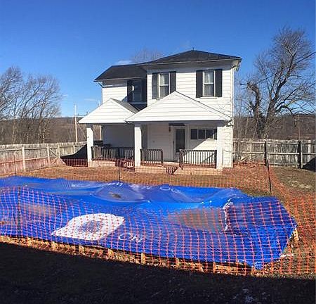 Spacious home, first floor master with full bath, inground pool not repairable,REPAIRS JUST AUTHORIZED-REPLACED LEAKING ROOF, FLASHING ON CHIMNEY, CLEANED AREAS OF MOLD, REPLACIED CEILING TILE IN BATHROOM. PUT SOFFIT BACK UP ON PORCH, nice sized rooms, one bedroom was recently drywalled and not totally finished-closet doors need hung, walls painted and trimmed. Extra small room on second floor for storage, office or whatever. Laundry was in upstairs bath at one time-plumbing still there. Sits on the bluff over looking the river. Great wrap around porch to relax on. Oak kitchen, wrap around back porch also.
