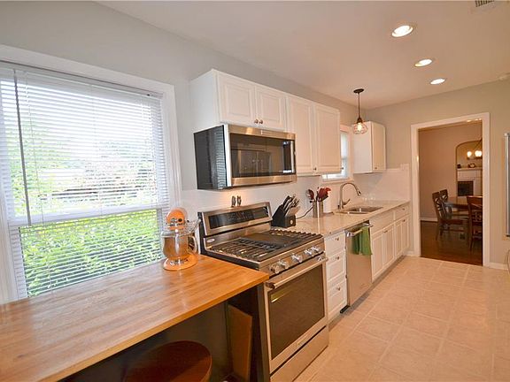 Beautiful 1930's stone cottage, just minutes from Bishop Arts District. This home has all of the character of the period, but has been tastefully updated in all the right places. This perfect blend of historic and contemporary style includes recessed lights, granite, updated bath, stainless steel appliances, hardwoods, stained glass, and ornate cupola. Huge yard on corner lot. Versatile sun room can be used in so many ways. Hampton address, but driveway, garage, & parking on Marvin.