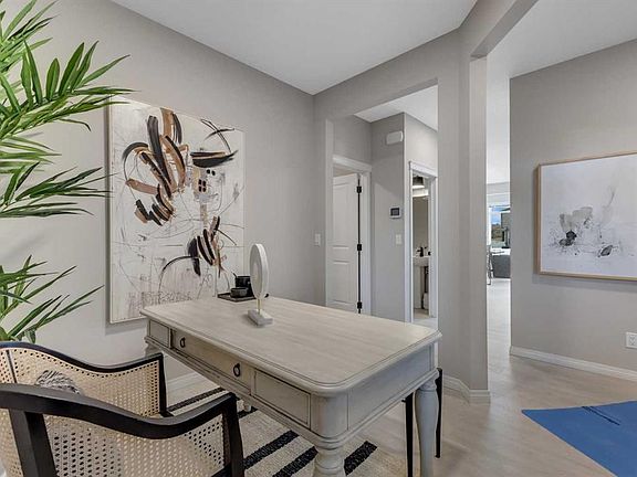 Former Show home: Step into over 1,900 sq ft of modern comfort, featuring 3 bedrooms, 2.5 baths, and a double garage. The main floor flex room offers versatility for your home office or guest space. Enjoy elegant upgrades throughout — from quartz countertops, custom lighting, and black hardware package to a chimney-style hood fan and upgraded backsplash. Unwind in the 5-piece ensuite with a soaker tub, gather in the bonus room, or host on the 10’x10’ deck with a gas BBQ line. This home also includes air conditioning, window coverings, iron spindle railings, and a 50” built-in electric fireplace — all thoughtfully designed for comfort and style. Note: Home is staged for presentation. All staging items and décor are excluded from the sale.