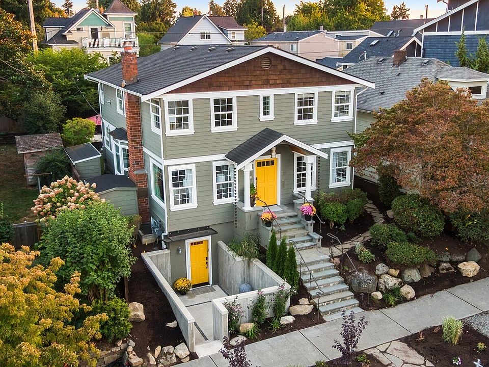 Timeless 1907 Green Lake Craftsman blends historic charm with modern sophistication just 4 blocks from the park, trail, cafés & shops. Spacious 3,460 sq. ft. home offers 5 beds, 4 baths & $700K+ in upgrades. Lower level showcases 9’ ceilings, radiant heated stamped concrete floors, custom cabinetry, full chef’s kitchen, earthquake retrofit & private ADU entrance. Smart-wired (Alexa-compatible) w/high-speed cabling throughout. Upstairs features 3 bedrooms + primary suite w/skylit bath & laundry. Brazilian hardwood decks overlook landscaped backyard off paved alley. With electricity & sewer in place, lot is DADU-ready offering rare dual-income potential w/ADU alongside stunning main residence in one of Seattle’s most coveted neighborhoods.