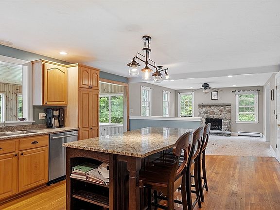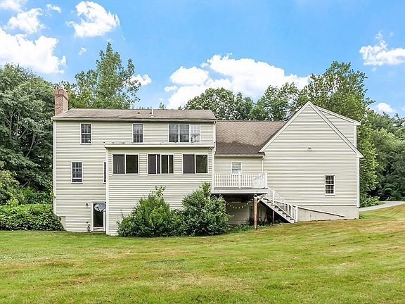 SPACIOUS HOME on over 2 acres of land , nicely and privately located off the road, surrounded by trees while maintaining a large usable yard area for your enjoyment. 4 SEASON SUNROOM allows one to take in the beauty of nature, with access to the deck . FIREPLACE in family room off the kitchen , granite island , separate dining room , den/office and 1/2 bath and a laundry room& storage . 2nd floor has 3 bedroom , full bathroom, MAIN SUITE with 2nd full bath and walk-in closet . BONUS REC ROOM/teen suite over garage has separate entrance . FLEXIBLE FLOOR PLAN . CENTRAL A/C . Worth your TLC to bring this home back to it's full potential . WALK-OUT basement offers additional potential living area . Excellent home for entertaining with plenty of parking and desirable location , easy commute & highway access.
