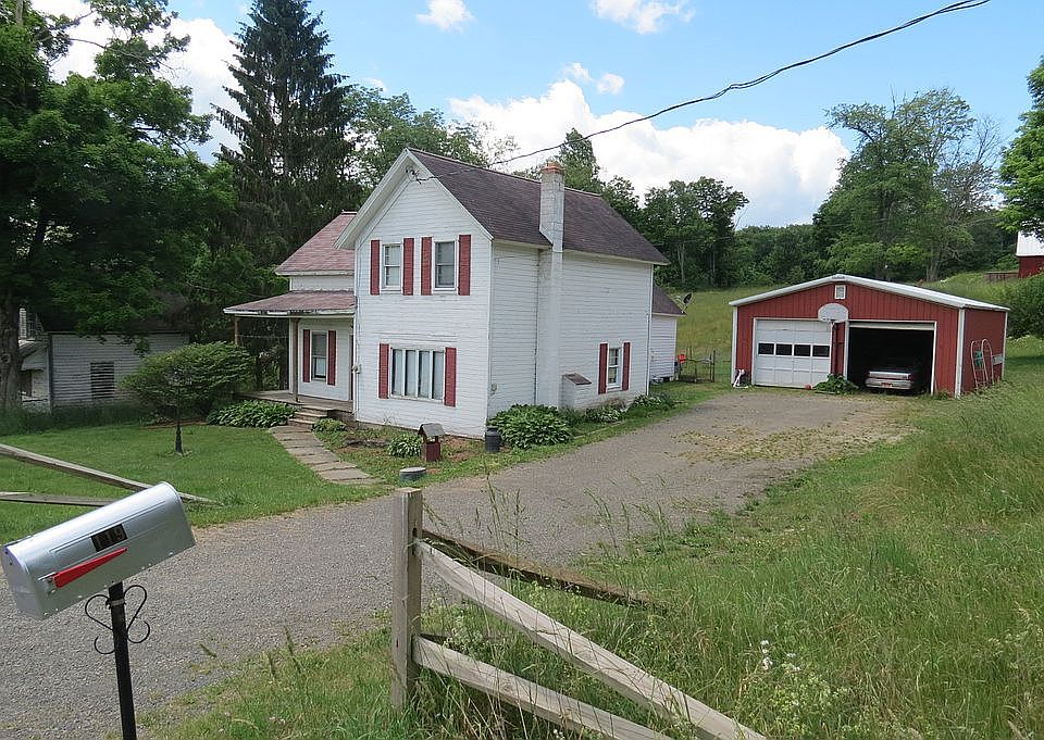 Perfect for a Hobby Farm or anyone looking for a place in the country! This small farm sits on 9 beautiful acres. The house has 3 bedrooms upstairs, and on level 1 there are 1-2 bedrooms, a large family room, dining room, kitchen with large walk in pantry, 1 full bathroom, a laundry / mud room entry with a wheelchair accessible metal ramp, and a finished bonus room on the back of the house that opens to another small metal deck with a ramp into a fenced in back yard perfect for animals. Enjoy the outdoors by relaxing on the wrap around front porch, or ride your own land on horse or ATV, with snowmobile and horse trails just up the road in the statelands. The oversized metal garage is insulated and has electric. Sitting up on the hill is a beautiful red barn that has electric (should be updated) and 7 roomy stalls perfect for horses. Large open field with some wooded on the back corner and a stacked stone wall borders the property.