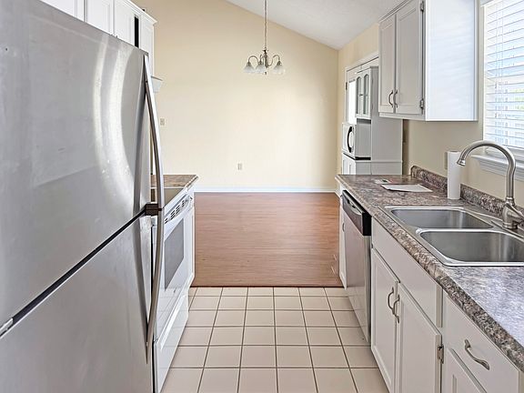 You'll feel 'happy the minute you walk into this your new home! It's ready for you to move in. Bright and open with vaulted ceilings and most efficent living floor plan! Stainless steel dishwasher and range, and a laundry room off the kitchen in the house so you can stay cool! The dining room has French doors that open onto a covered patio with a large, level backyard. There's a privacy fence and a fire pit, so you can relax and enjoy the outdoors the way you like! The master bath has a large walk-in closet. And for parking, there's a one-car garage and a raised ceiling in the living and dining area. Overall, this home has been well-maintained and looks and feels like home! Great location to bases and shopping minutes away! Call today! New roof 9/6/2022
