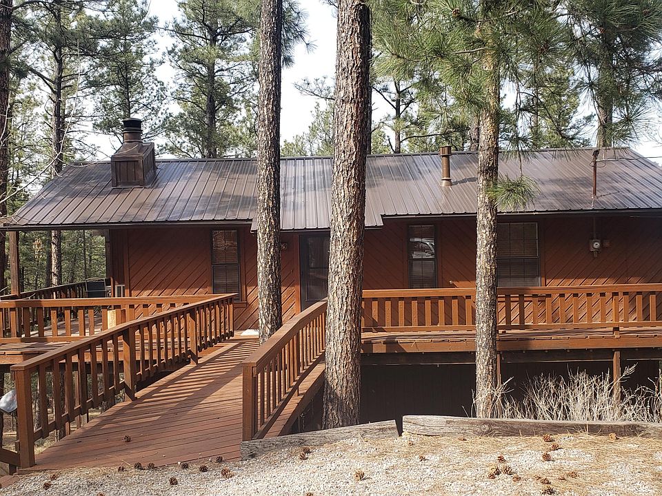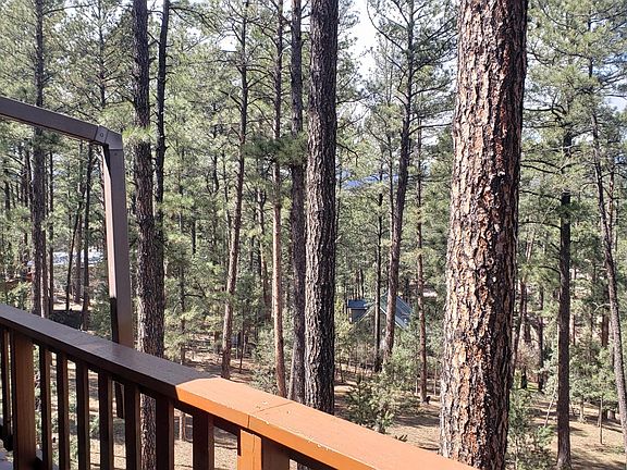 This well kept cabin in the pines has a wrap around deck with a large covered area for enjoying the fresh air come rain, snow or sun. 3 bed 2 bath, level entry, new metal roof and fully furnished makes this a deal too good to pass up. Great location with beautiful views and close to town, schools, walking trail, library and more.