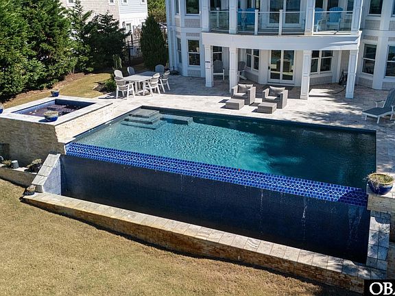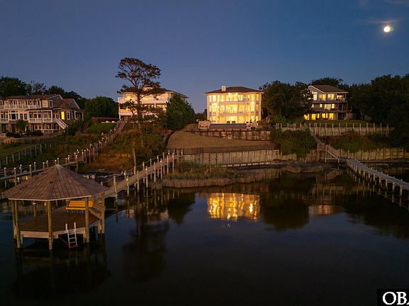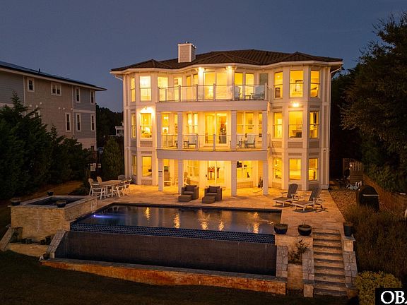 Perched high above the Currituck Sound, 119 Osprey Ridge Road in Duck, NC offers some of the most breathtaking water views and sunsets on the Outer Banks. From its elevated vantage point, this extraordinary soundfront estate captures the essence of coastal elegance—where panoramic vistas, stunning sunsets, and refined craftsmanship come together in perfect harmony. Experience unparalleled luxury in this exquisite soundfront residence, ideally situated in the heart of Duck. Perched atop one of the highest lots in the area, this custom-built masterpiece by Olin Finch offers over 7,000 square feet of pure indulgence, thoughtfully designed to showcase the most captivating water views and unforgettable sunsets the Outer Banks has to offer. Built in 2014, every detail of this home speaks to sophistication and meticulous craftsmanship. The estate boasts three meticulously planned levels, each offering panoramic vistas from virtually every space. Step outside onto the expansive decks or lounge by the custom infinity pool and hot tub, all while enjoying the serene backdrop of the Currituck Sound. Inside, discover a wealth of luxury features, including seven ensuite bedrooms, a state-of-the-art theater room, an elevator for convenience, a rejuvenating sauna, and a well-equipped exercise room. A private office space caters to those seeking a blend of work and leisure, while a spacious recreation room provides the perfect venue for entertainment. On the ground level, a bonus room currently serves as an eighth bedroom for additional guest accommodations. No expense was spared in the construction of this home, evident in the European granite counters, Persian marble bathrooms, and acacia hardwood floors that grace its interior. The gourmet kitchen is equipped with top-of-the-line Thermador appliances, ideal for culinary enthusiasts. Thoughtfully curated furnishings complement every space, and the home is being offered fully furnished, presenting a turnkey opportunity for the next owner to immediately embrace the exceptional Outer Banks lifestyle. Outside, the estate is complemented by a European tile roof, composite siding, a stone driveway, and meticulously landscaped grounds, all secured by a private gated entry. A dock with a covered gazebo extends into the sound, offering direct access to the water for boating and recreation. Located just moments from downtown Duck, residents enjoy easy access to a vibrant community offering fine dining, boutique shopping, live music, and the picturesque Duck waterfront boardwalk. Nearby Kitty Hawk and Nags Head provide additional conveniences such as grocery stores and further entertainment options. This property represents the pinnacle of luxury living on the Outer Banks and is tailor-made for the discerning buyer seeking a sophisticated retreat with unmatched amenities and unparalleled views. Arrange your private viewing today and discover the epitome of coastal elegance in Duck, NC.