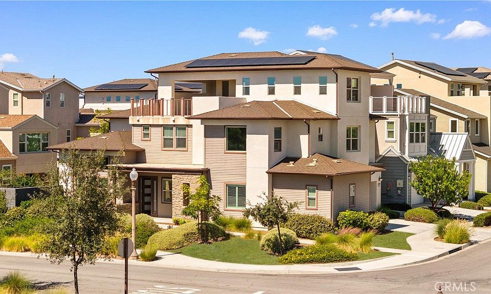 BIG CORNER LOT! PERFECT LOCATION! DRIVEWAY! Across the future botanical garden and lakes in Great Park! Only a couple of minutes walk to Great Park Bosque trail, to K-8 Top IRVINE SCHOOL, to Cadence community park, to future botanic garden, lakes and all green belts! The brand new CANOPY shopping center with DaTongHua supermarket will be open in 2026 and it is also only a short walking distance away! This sunlit home offers exceptional location and a seamless connection to the outdoors. The main level is filled with natural light, featuring a spacious open-concept kitchen, dining, and living area that effortlessly flows into a private backyard through pocket sliding doors. The backyard also includes a built-in fireplace, creating a warm, inviting atmosphere for evening gatherings or quiet reflection. A downstairs bedroom and full bath provide convenience and flexibility for guests or multigenerational living. The powder room gives extra convenience and privacy! Upstairs on the second level, you'll find the serene primary suite with a spa-inspired en-suite bathroom, along with two spacious closets for her and him. Two generously sized secondary bedrooms each with its own full bathroom! The third floor opens to a bright and expansive loft with a powder room, offering endless possibilities as a media room, office, yoga room, kid's playroom or creative space. A very large private balcony invites you to relax and take in sweeping views of the neighborhood and the gentle hillside beyond—a perfect spot for morning coffee or evening sunsets. With its rare corner location, perfect open layout, and abundant natural light across all three levels, this home offers a harmonious blend of comfort, space, and elevated everyday living. Enjoy all the amazing amenities of the Great Park Neighborhoods, including its parks, clubhouse, heated pools, hot tubs, sports courts and fields, playgrounds, and picnic areas. Must see to appreciate!